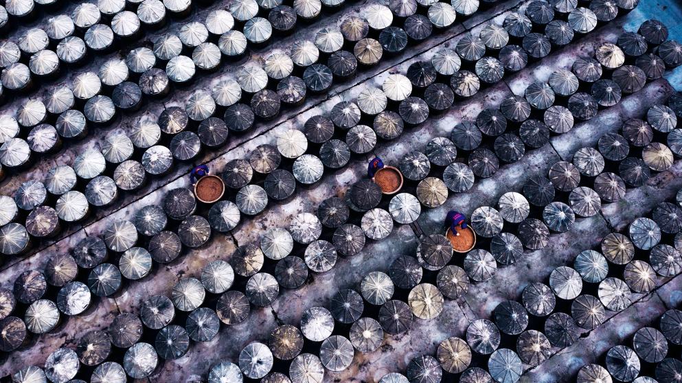 胡玉美酿造食品有限公司晒场上的酱缸。(受访者供图)