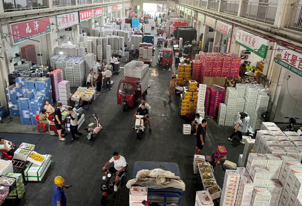 9月2日下午,正在开市交易中的长沙市雨花区红星全球农批中心一角。(许海峰 摄)
