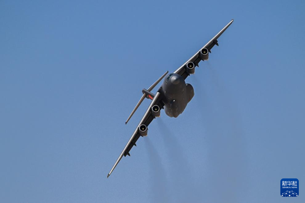 9月3日,在埃及阿拉曼开幕的首届埃及航展上,中国空军运-20进行飞行展示。新华社发(周雪峰 摄)