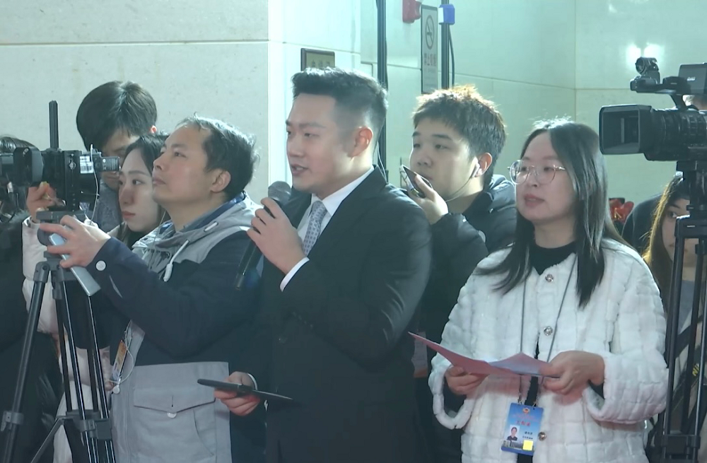 记者在广西壮族自治区政协十三届二次会议“委员通道”集体采访上提问。