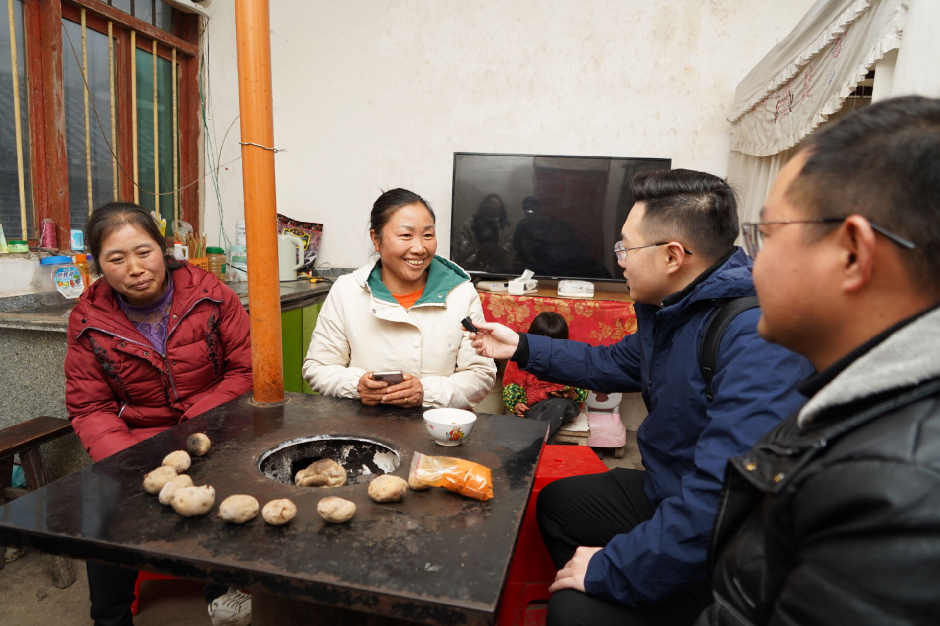 记者在贵州省大方县羊场镇新田村采访报道当地乡村振兴工作。
