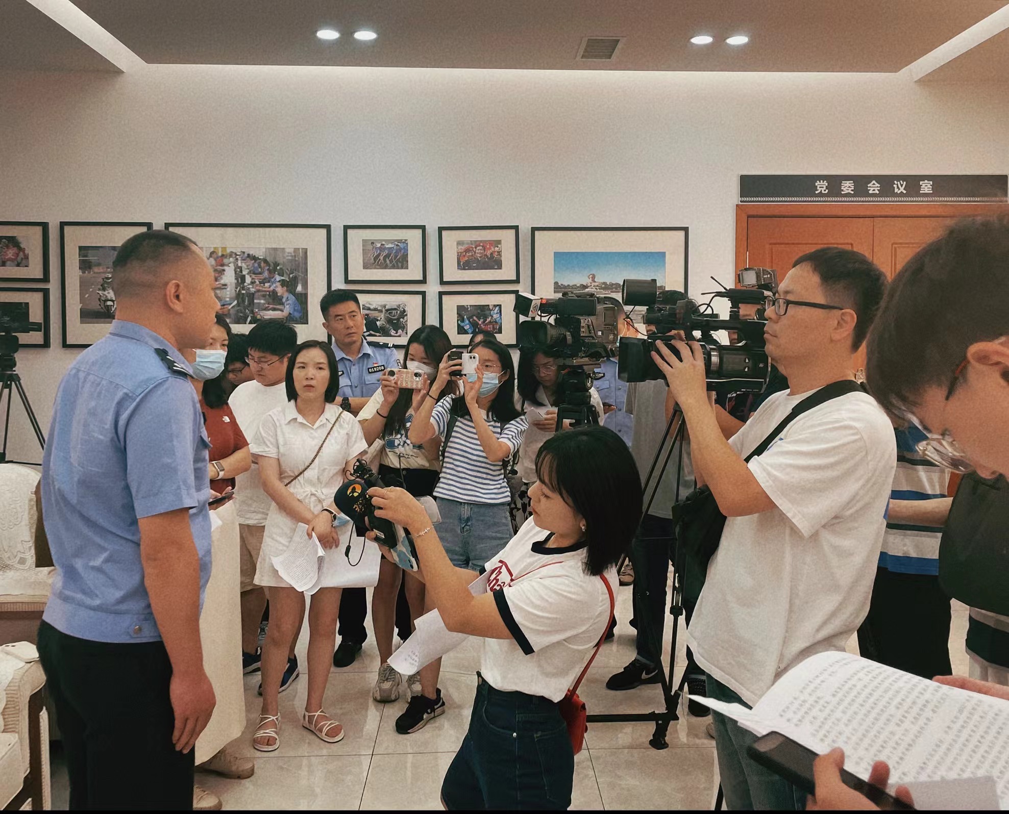 长沙市广播电视台梁兴兴在长沙市公安局进行案件采访报道