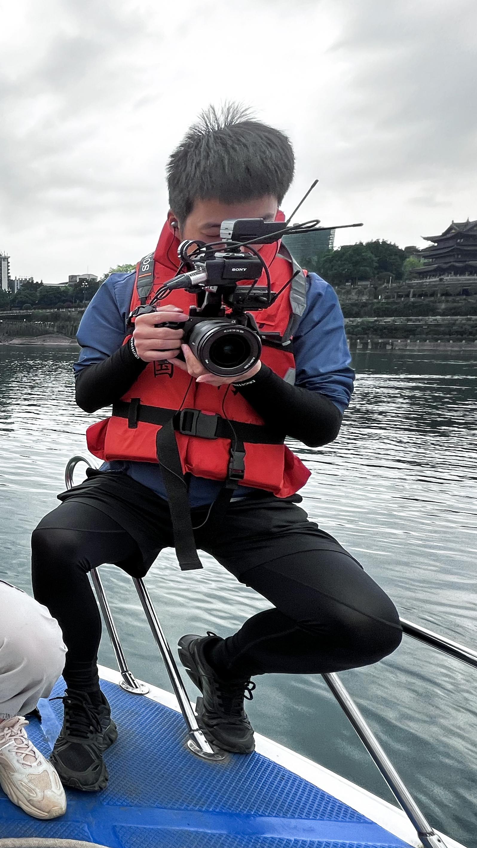 四川日报报业集团 陈旻翔 工作照 在宜宾三江口进行拍摄