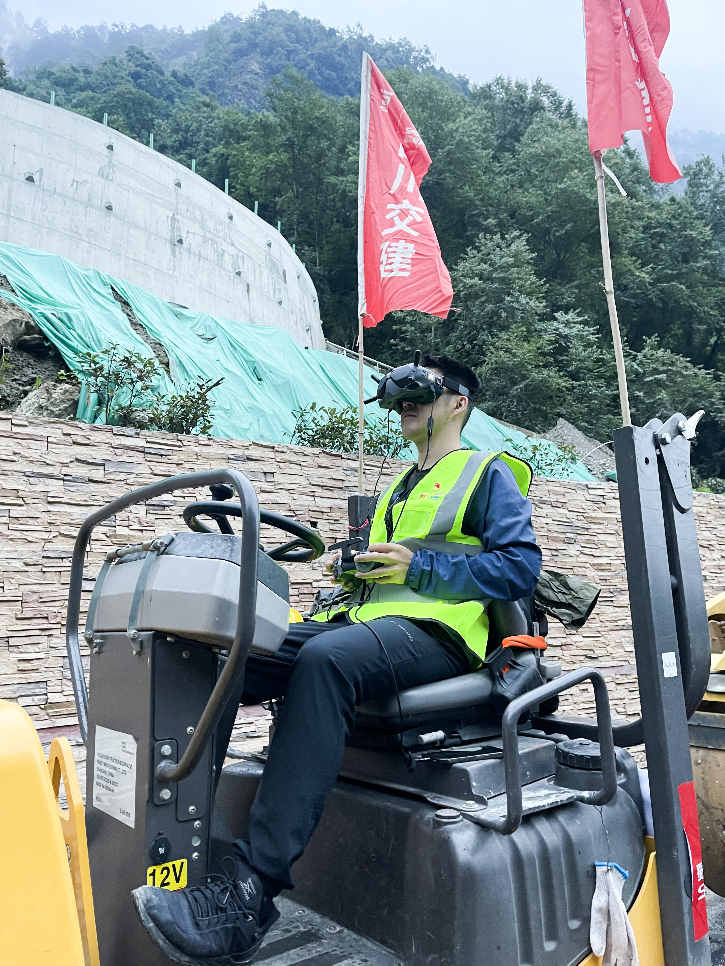 四川日报报业集团 陈旻翔 工作照 九五泸定地震后在海螺沟道路重建现场利用穿越机进行拍摄