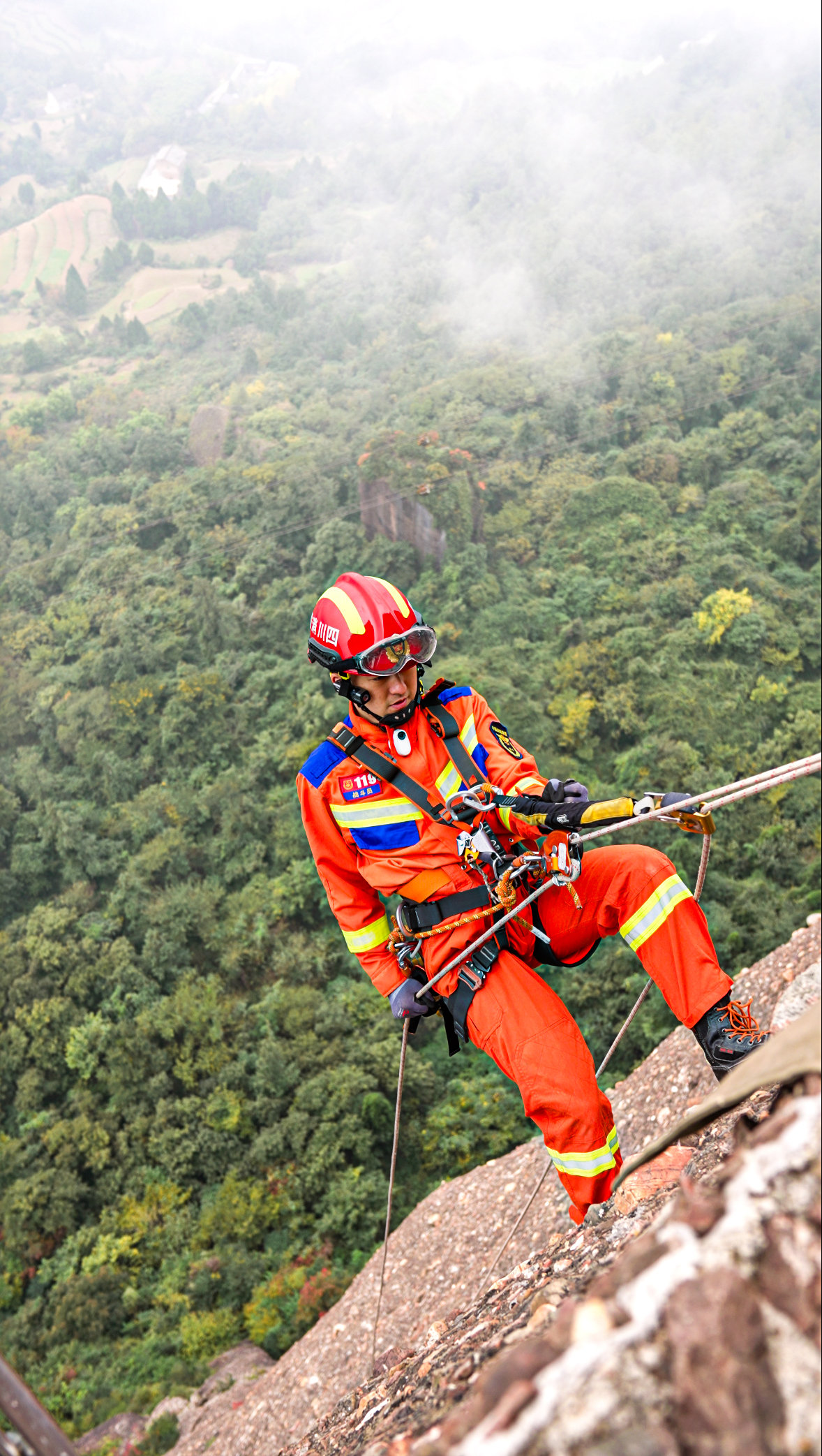 四川日报报业集团 陈旻翔 工作照 在四川省广元市参与消防悬崖救援演练