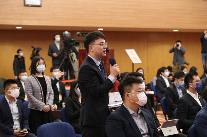 2022年3月,新华社记者周圆在全国两会上提问