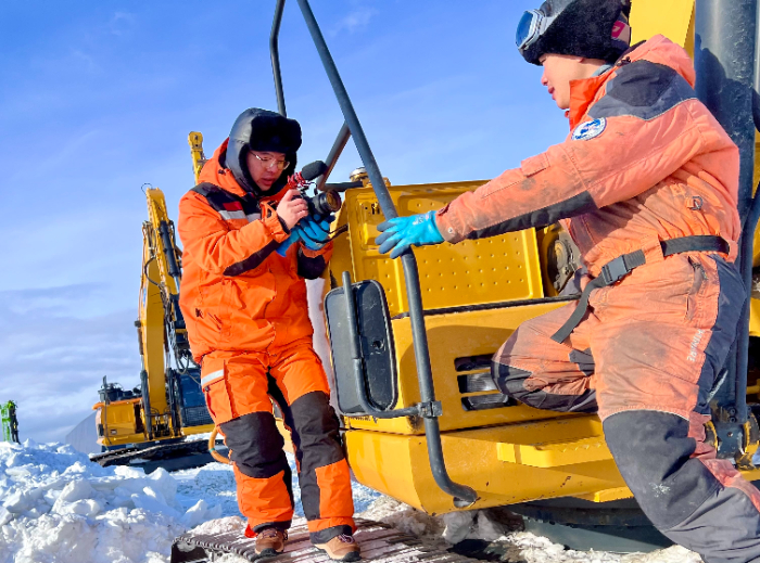 新华社记者周圆在南极秦岭站采访建站队员