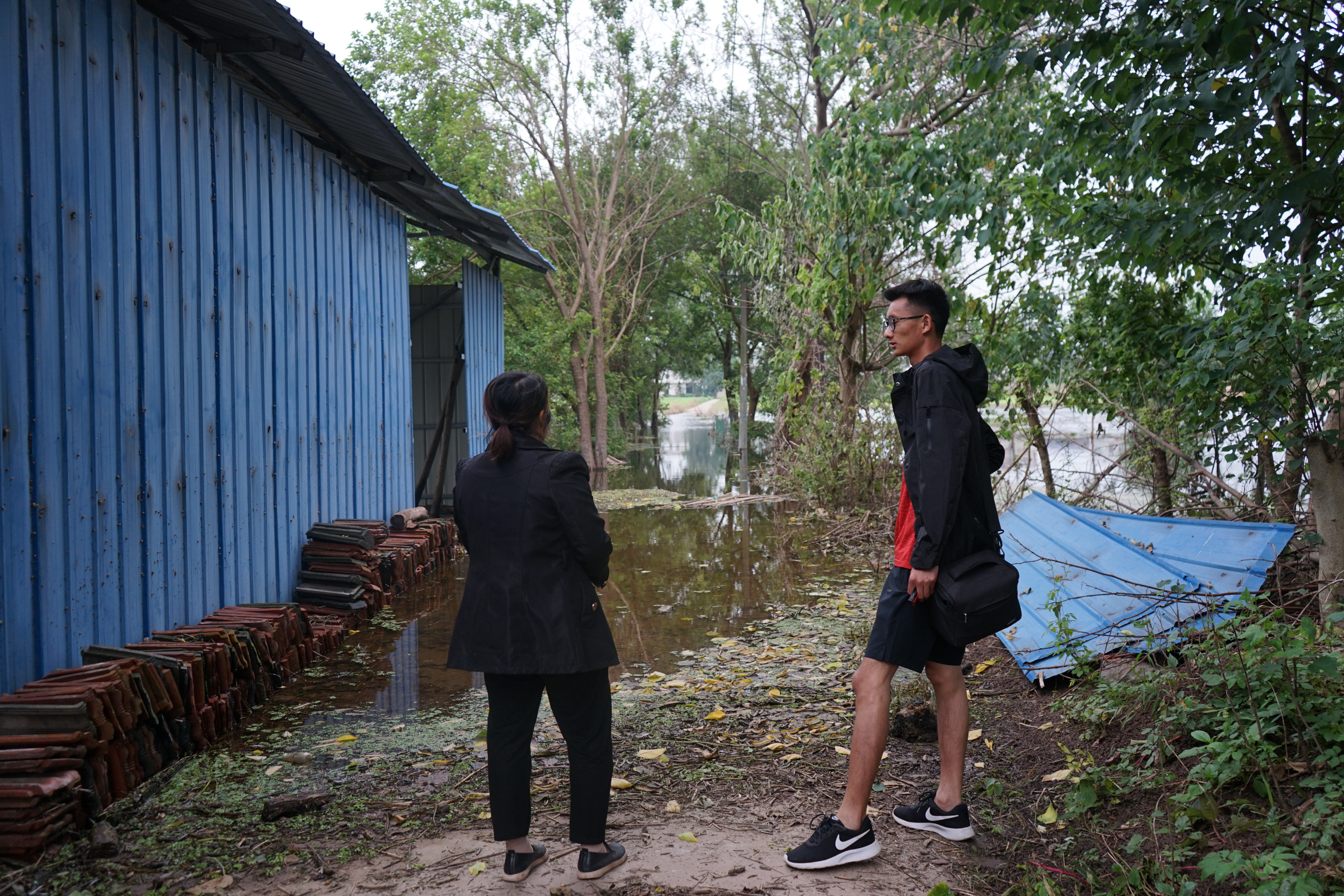 2020年7月在江西九江受灾村庄采访。