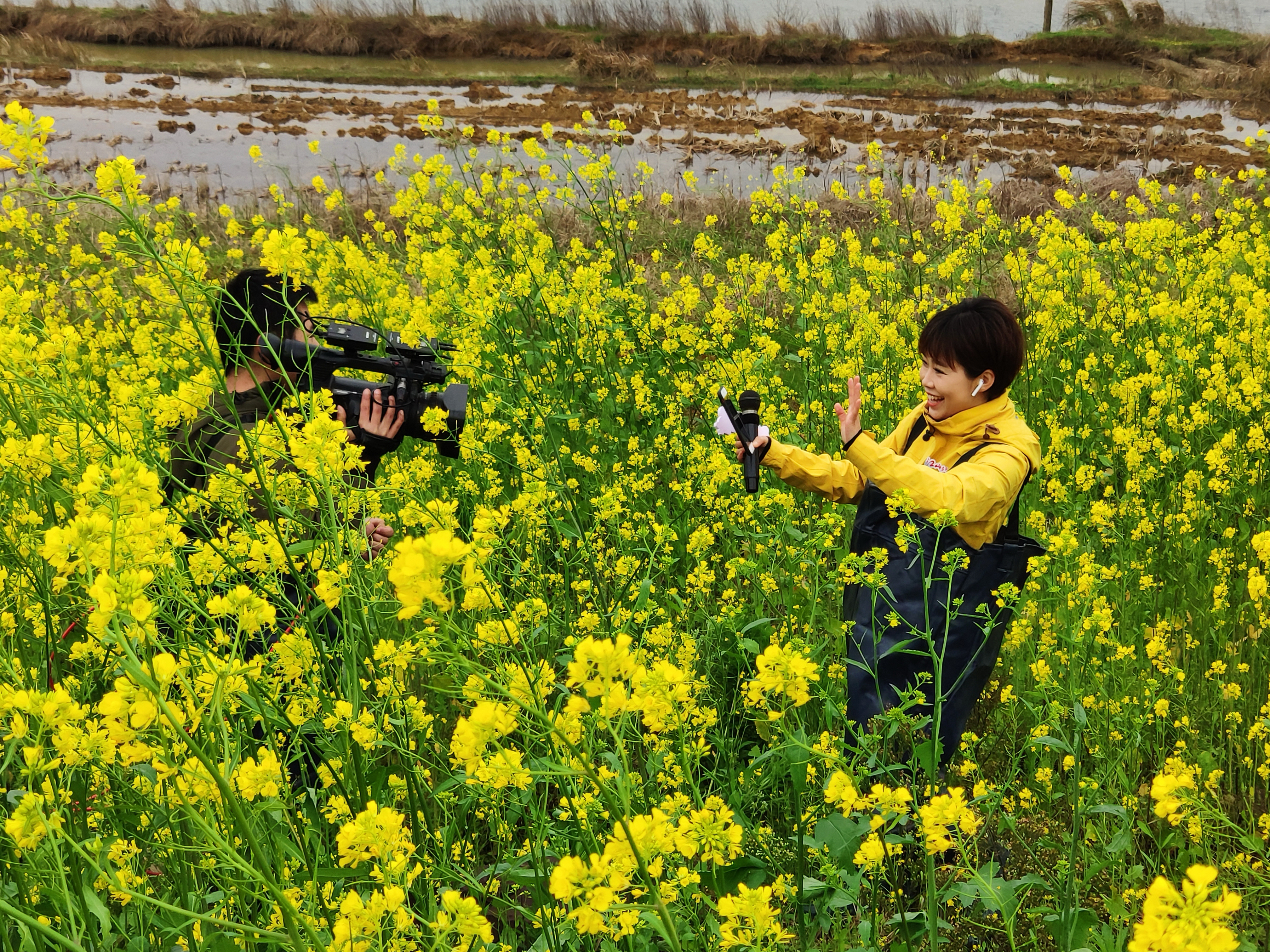 照片拍摄于上饶婺源,万亩油菜花田盛开,正在直播向全国网友展现江西美丽乡村