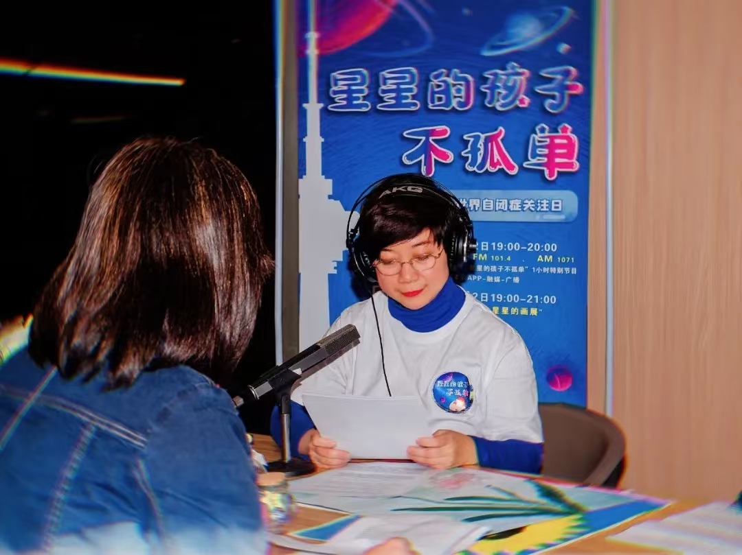 星星的孩子不孤单节目播出之后,引起了广泛的社会关注。很多妈妈找到我,希望能为孩子们做点什么。新闻人的敏锐提醒我:何不把爱心妈妈们组织起来,带着孩子一起做公益。2021年10月,我作为发起人,经济广播成立了本市第一家亲子志愿团队:阳光妈妈巾帼志愿服务队。当时恰逢疫情期间,无法开展线下活动,于是“为爱朗读”活动应运而生。成为志愿者,用声音传递爱心,用电波呼吁关注。目前为爱朗读已经推出8期主题活动,带动本市20多所学校、近5万人参与,成为本市中小学开展家庭教育、思政教育、立德树人、推进全民阅读的重要活动。