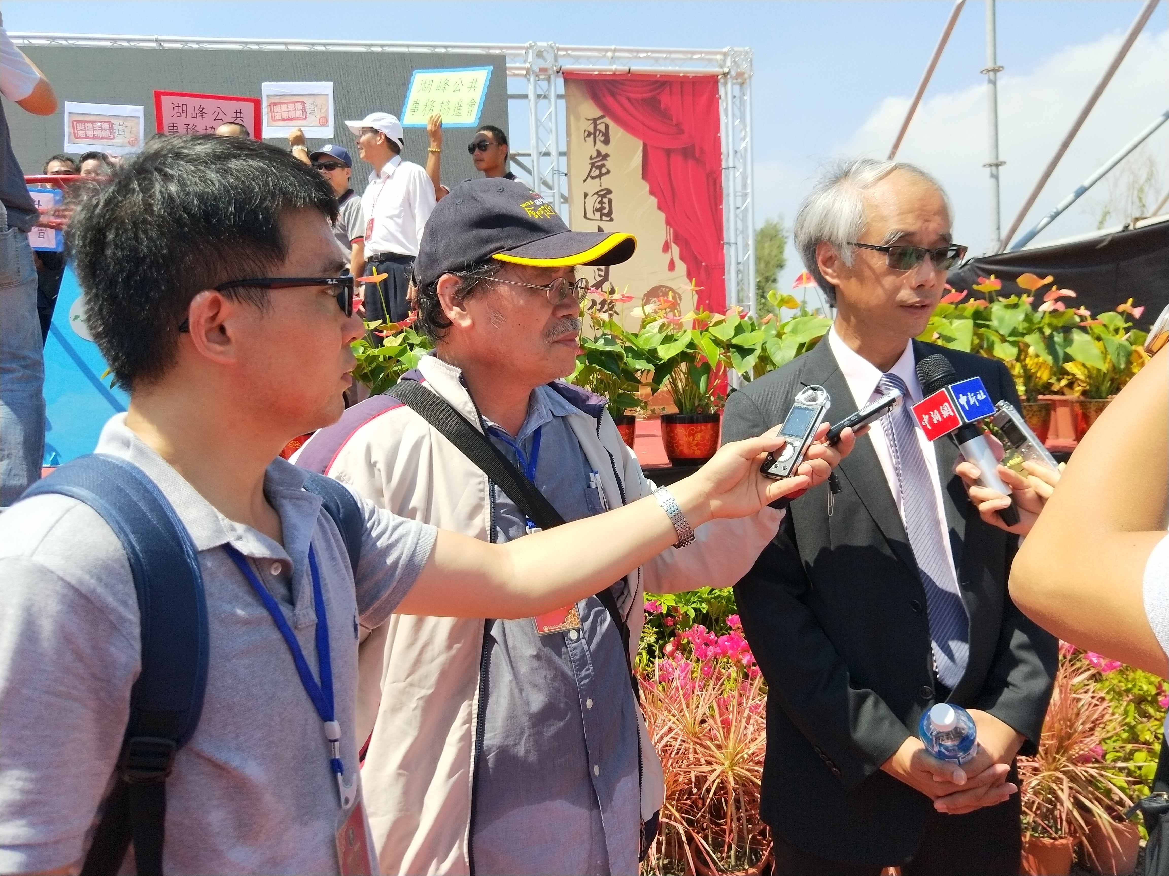 2018年8月在金门两岸通水见证仪式上,采访金门县自来水厂负责人