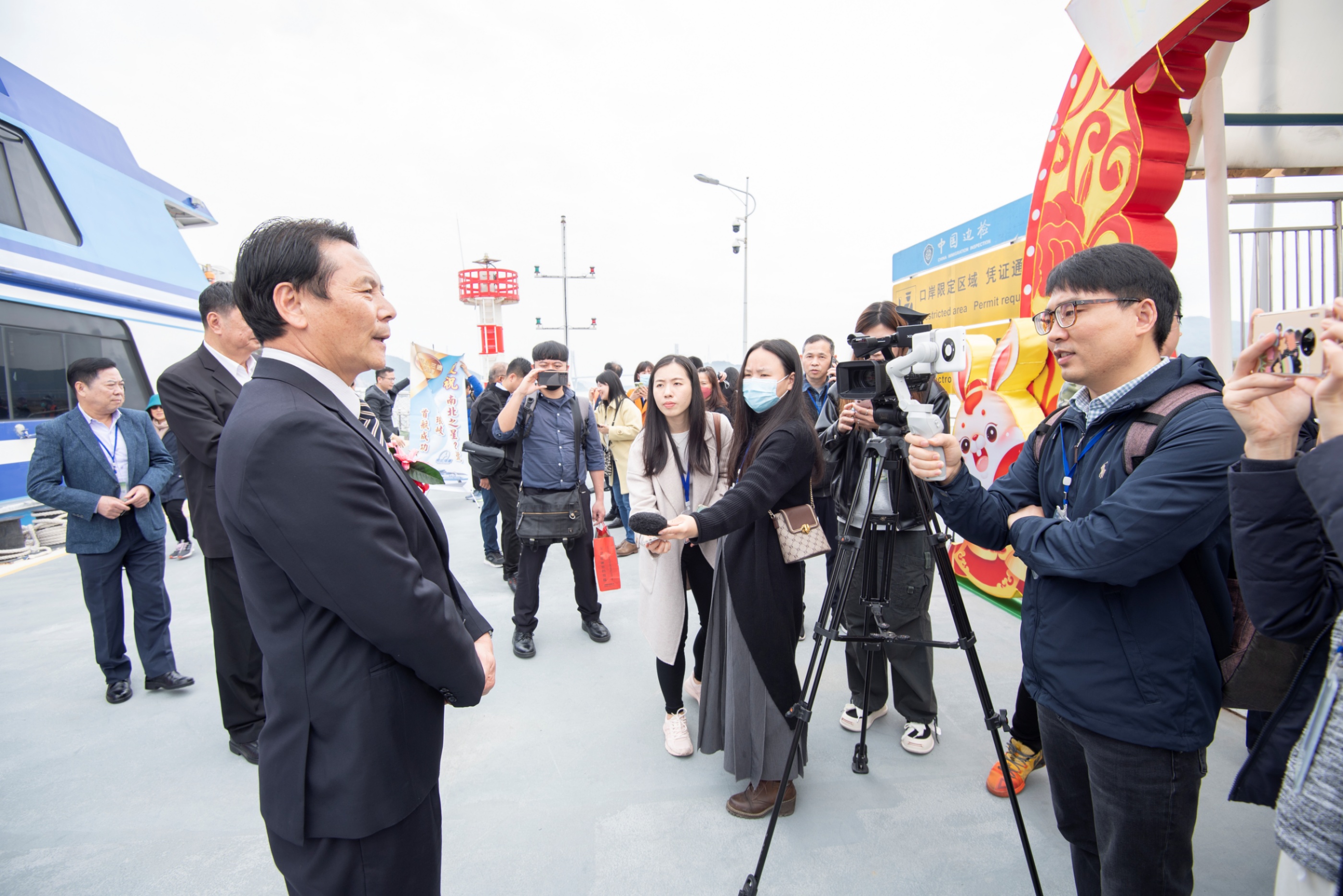 2023年4月福马“小三通”客运航线新客轮首航,采访马祖县长王忠铭