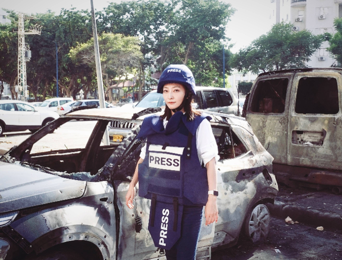 两座城市相隔几十公里,不同的时间空间我们再次相遇。那一刻,我更加坚定了自己身上的使命感和责任感。事实上,由于很多外国人早已在战火爆发初期离开了巴以地区,每当人们看到我一个东方女性的形象独自出现在爆炸现场时,往往非常好奇,会主动上前与我交谈。我每次都会非常自豪地告诉他们,我来自中国,我来自中国的国家通讯社新华社。我想,在这样特殊的局势和场景中,我代表的早已不是我自己。能够为促进民心相通尽一份力,我很欣慰和自豪。