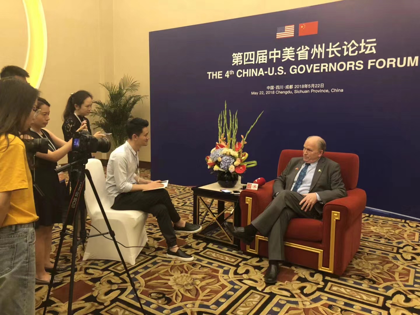 四川广播电视台李景良2018年采访参加第四届中美省州长论坛的美方代表