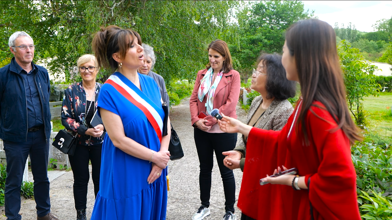 “牡丹花开动巴黎,你看吸引了这么多法国友人来这了解中国文化。你好,对我们来说,怡黎园是和平的桥梁、是文化交流的场所是骄傲,我们五个市长都来了。你好,常州!”