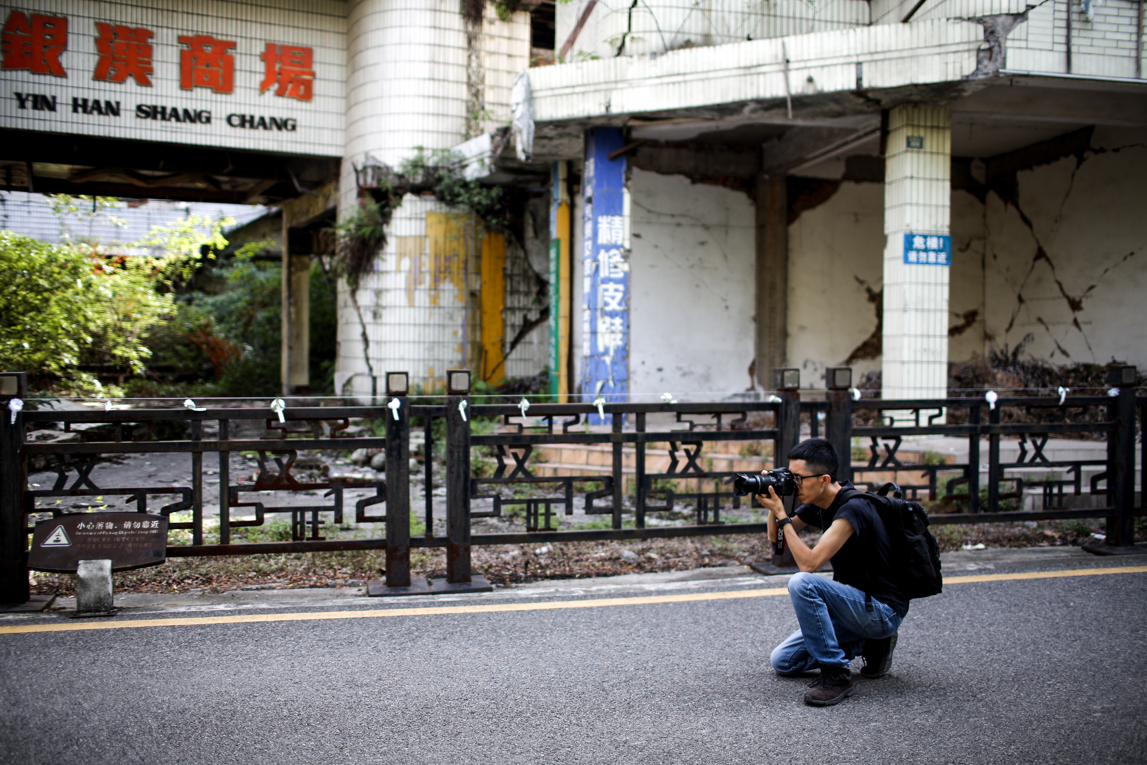 2018年5月12日,汶川地震十周年,王鑫昕在四川绵竹汉旺镇采访