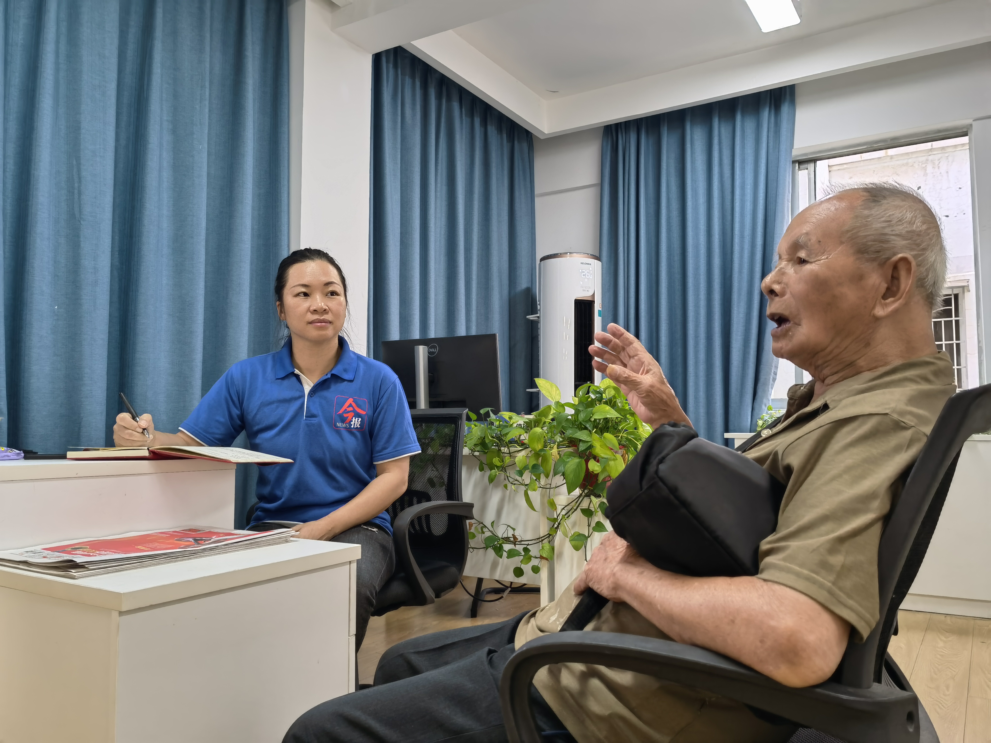 广西日报社李宁琳采访98岁的老人李志觉,这名老人十分热爱新闻行业,经常来给记者提供新闻线索。