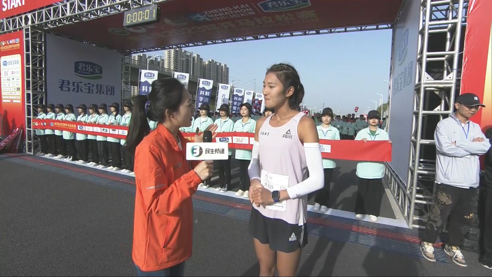 河南广播电视台李向丽-2023年4月在郑州,郑开马拉松赛采访选手焦安静