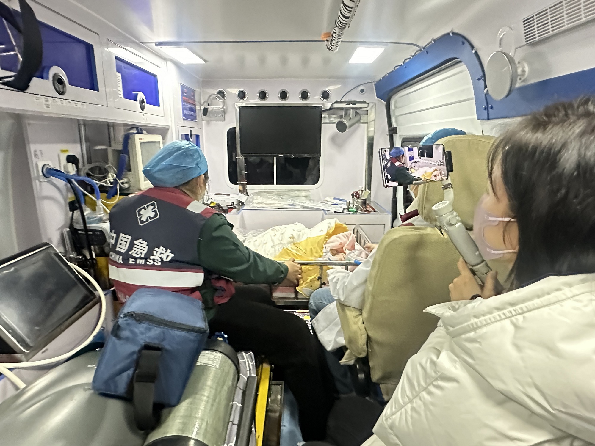 欣小妹凌晨12点在救护车上做出镜报道