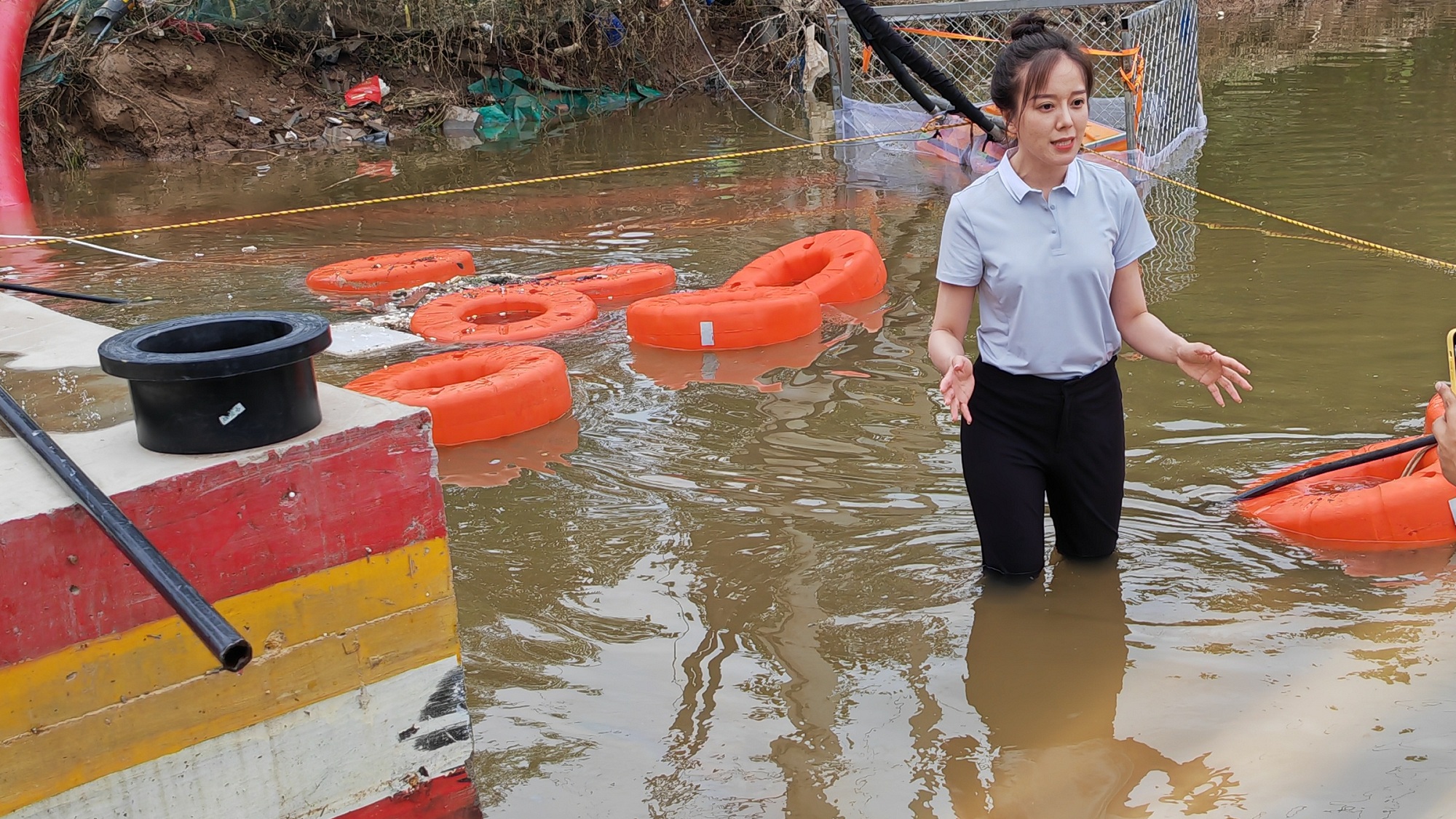 2023河北涿州防汛一线 欣小妹在40多公分积水中做出镜报道