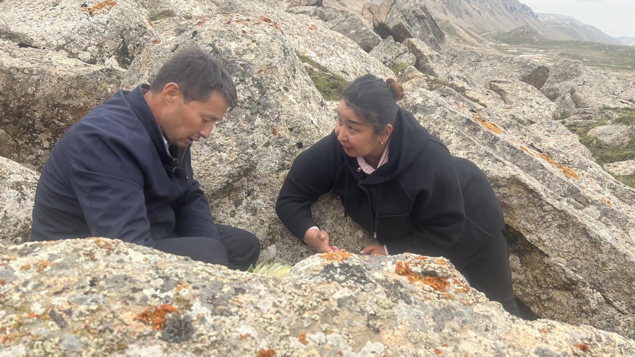 2024年7月13日,在海拔4000米的东天山山脉喀尔里克冰川区域,兵团广播电视台记者苏丽燕·阿依拜克趴在冰冷的石头上,正在采访主人公阿不都克热木·阿不都热依木关于雪莲花的生长情况。