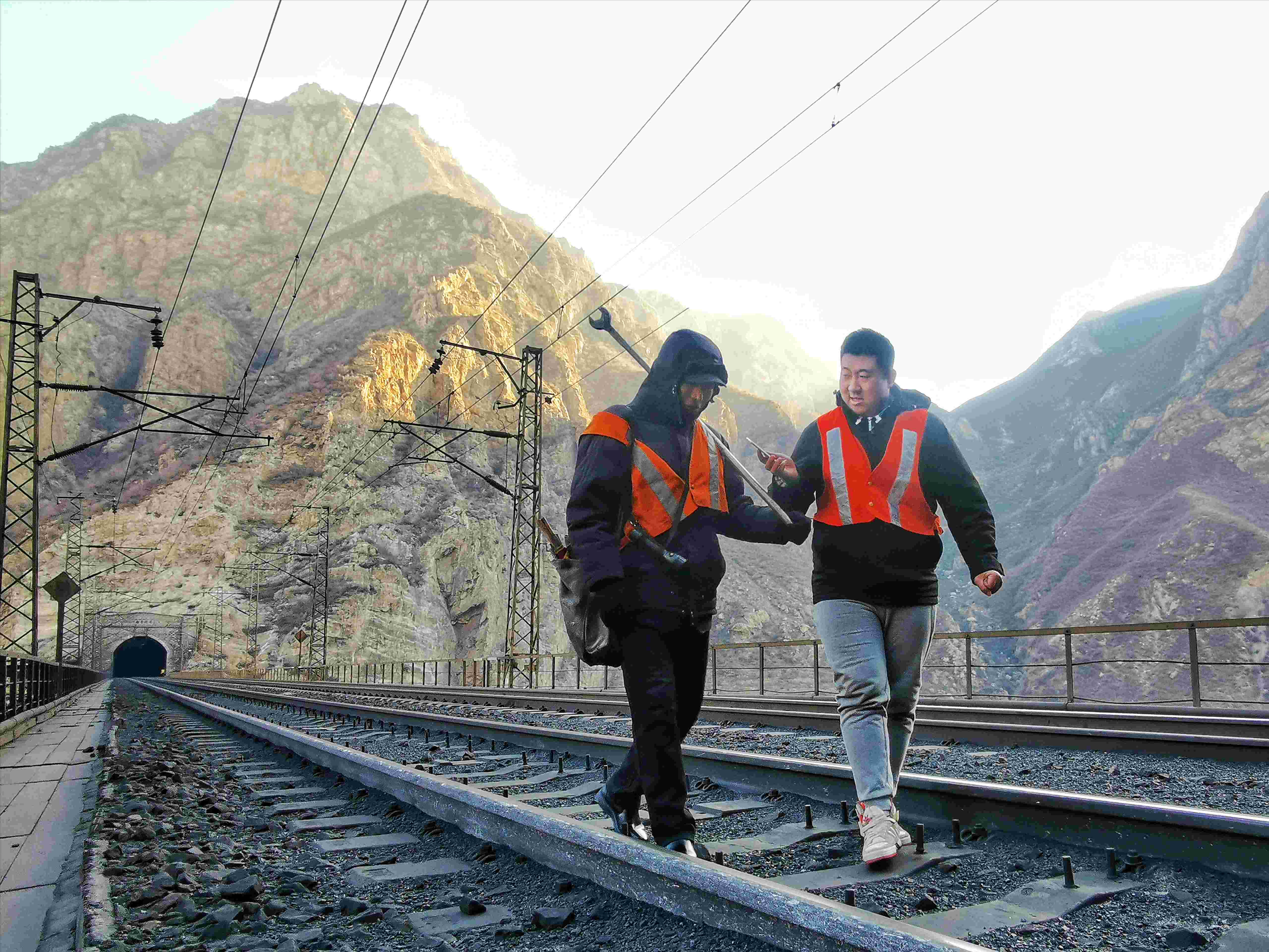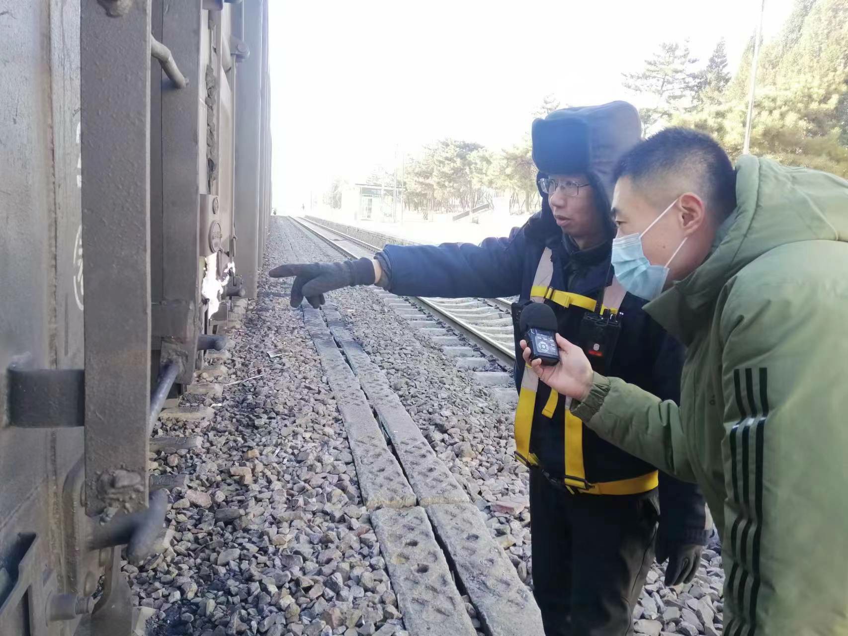 山西广播电视台杜佳梁在山西大同大秦铁路采访线路养护工人