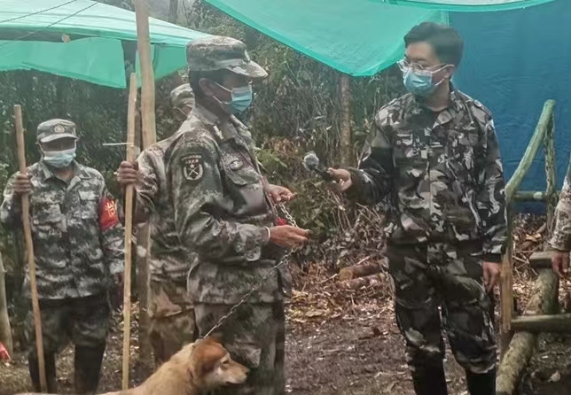 澜沧县融媒体中心 李飞雷(右一) 到澜沧县雪林乡边境线值守点采访值守人员