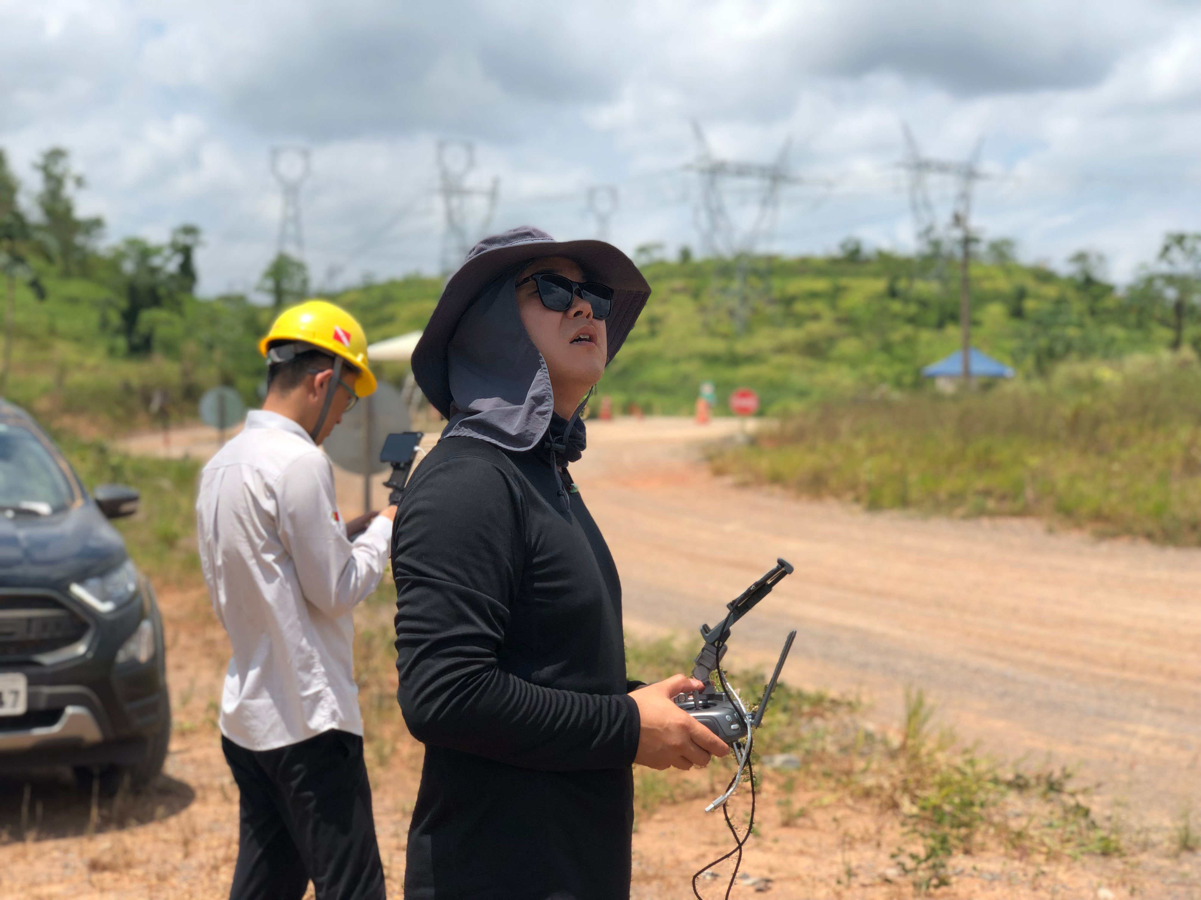 2019年,毕腾飞在巴西欣古航拍美丽山特高压二期工程建设