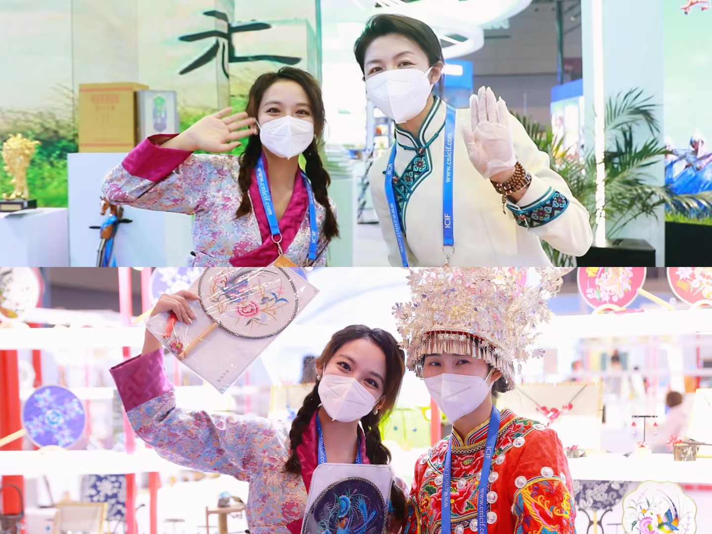 西藏广播电视台 普珍 图为2022年12月28日,本人在深圳文博会与来自重庆及内蒙古的采访对象身着各自的民族服饰合影