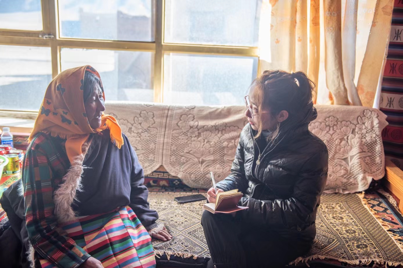 西藏广播电视台 普珍 图为2021年12月1日,本人在那曲市安多县村民家中采访脱贫情况