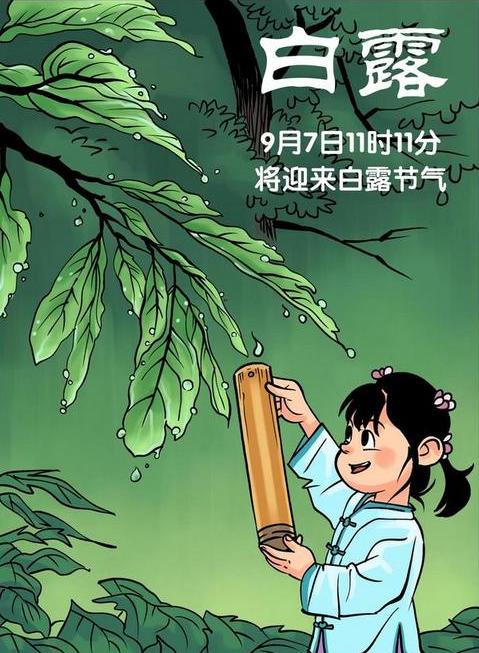 当太阳到达黄经165度,斗指庚,人们迎来节气——白露。此时节,暑天的闷热基本结束,天气渐渐转凉。由于昼夜温差增大,空气中的水汽遇冷凝结成露水,故名“白露”。元代文人吴澄编著的《月令七十二候集解》这样解释:“水土湿气凝而为露,秋属金,金色白,白者露之色,而气始寒也。”