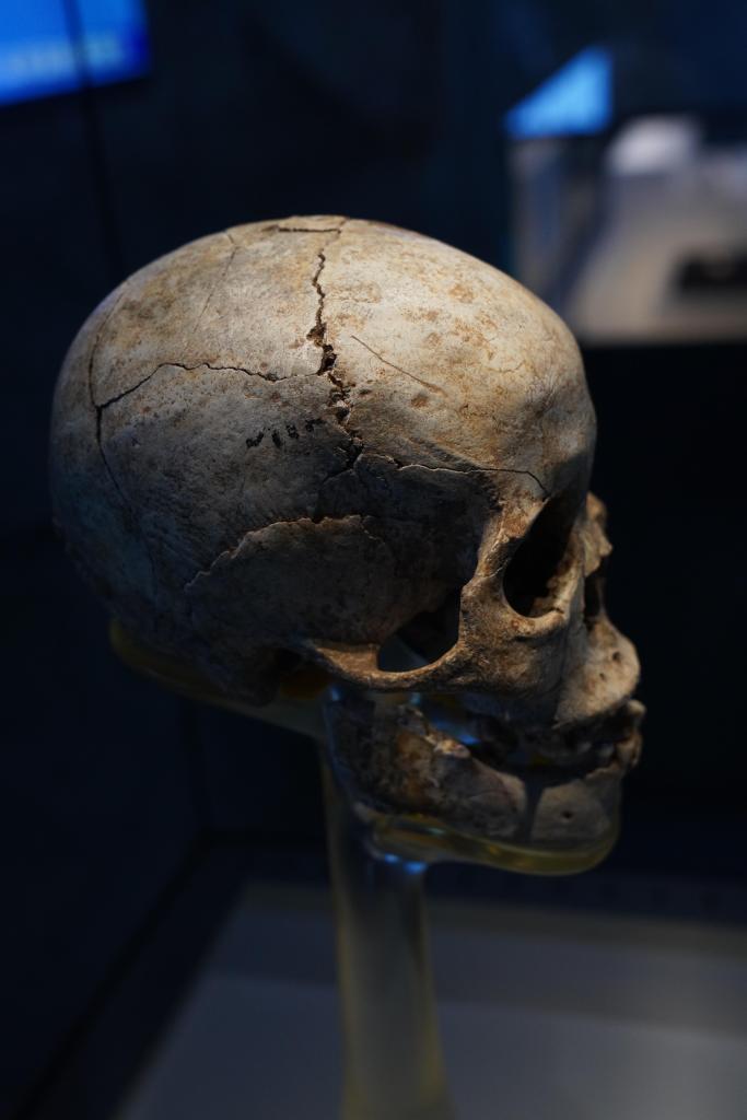 这是广西桂林甑皮岩遗址博物馆内展出的人头骨。新华社记者 尹栋逊 摄
