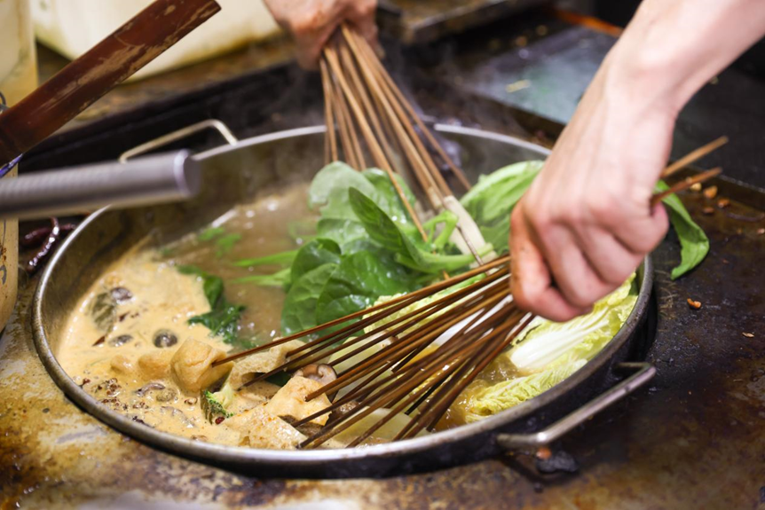 汤锅翻滚,竹签成把