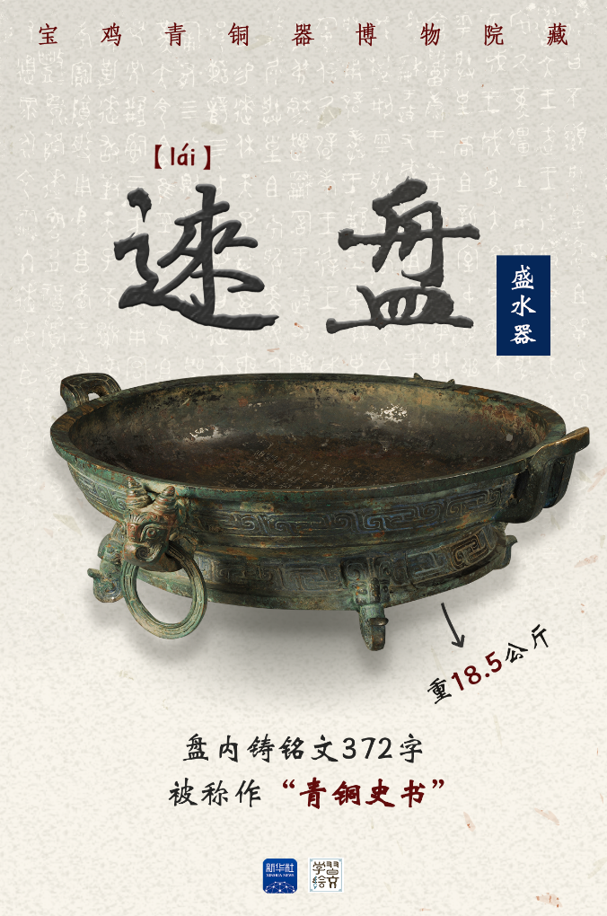 这件青铜器是被称作“青铜史书”的逨盘。盘内铸铭文372字,完整记录了单氏家族八代人辅佐西周12位周王征战、理政、管治林泽的重要史事。从铭文中可看出,周人将家族命运和国家命运紧密结合,也是后来儒家“修身、齐家、治国、平天下”的思想基础。