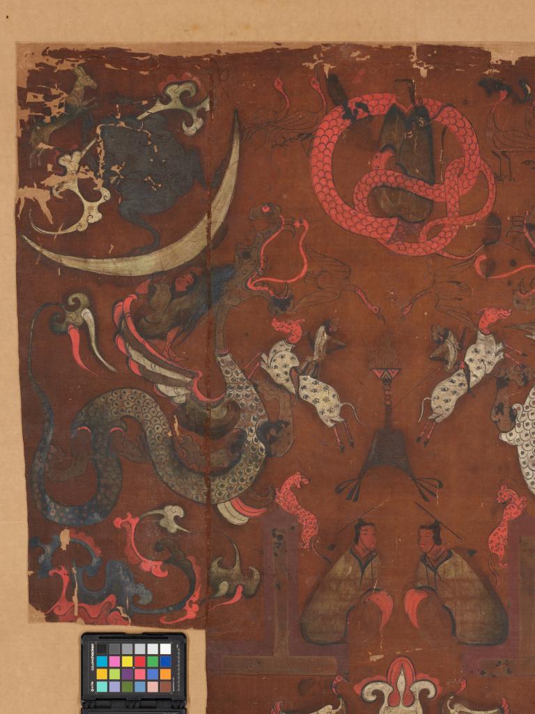 图为马王堆一号墓出土T形帛画的局部特写。(湖南博物院供图)
