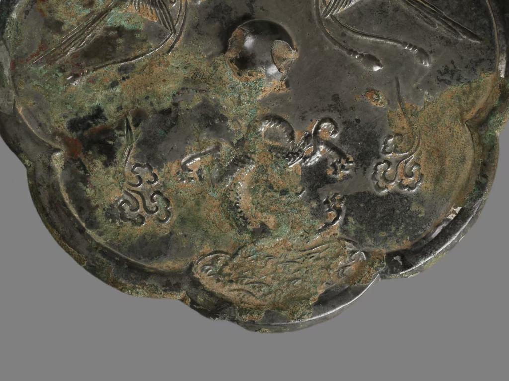 双鸾月宫纹葵花形镜(局部)(陕西历史博物馆供图)