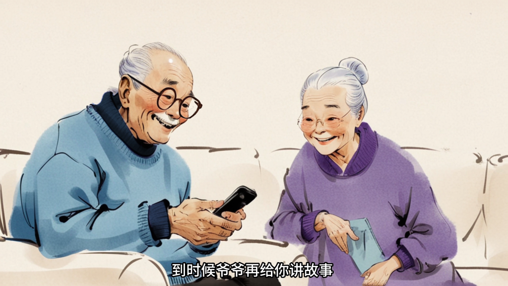 爷爷的善解人意令小哲瞬间回忆起了小时候听爷爷讲故事的时光。思念笼罩在心头,小哲突然想到也许可以让爷爷现在就讲一个故事听,重温一下过去的时光。