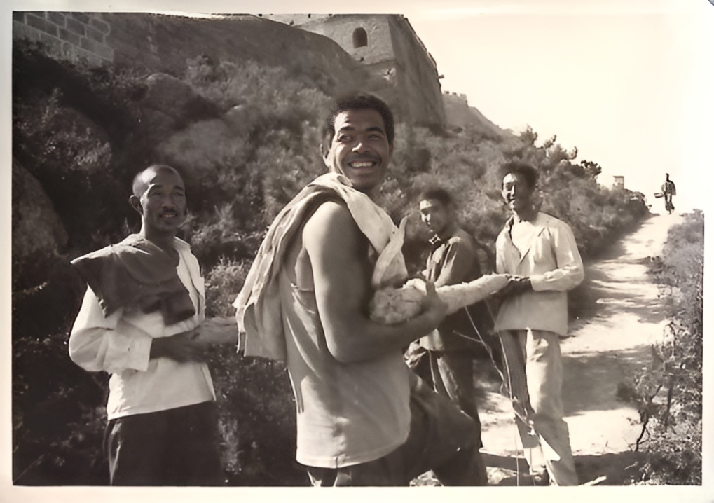 1984年,工人正在修整八达岭长城北七楼附近的一段城墙。这是用“爱我中华 修我长城”社会赞助活动所获款项进行修复的第一期工程。新华社记者 袁汝逊 摄