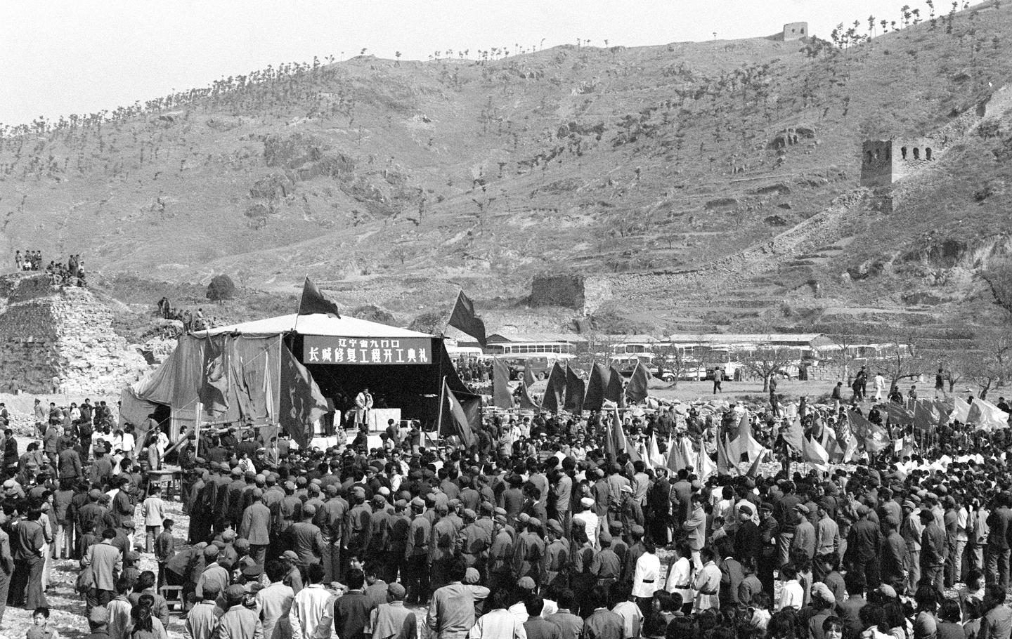 辽宁省九门口长城修复工程开工典礼于1986年4月26日举行。新华社记者 王辅捷 摄
