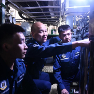 师父老潘知道了汤建维的想法,跟他说,在机舱工作就是特别辛苦。有一次执行巡礁任务,主机全速运行,突然“嘭”的一声,2号主机紧急降速,老潘一查是进气管垫片破裂,当时主机排气管温度达680度,需要人站在高温排气管中间的狭小空间操作,由于风高浪急,晕船呕吐的同时还容易烫伤,就这样一直抢修了一个多小时才把故障排除,最终在指定时间前赶到了目的地。