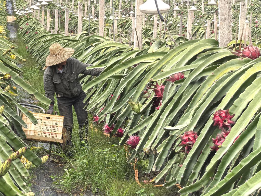 火龙果产业是广西隆安县优势特色水果产业。近年来,当地利用科技赋能火龙果产量增长、产业升级。水肥一体化灌溉喷淋系统、生物有机肥应用让火龙果甜度更高、品质更优;夜间补光设施催花也解决了春秋两季光照不足问题,增加火龙果采收3批次,实现每亩增产约1000斤。