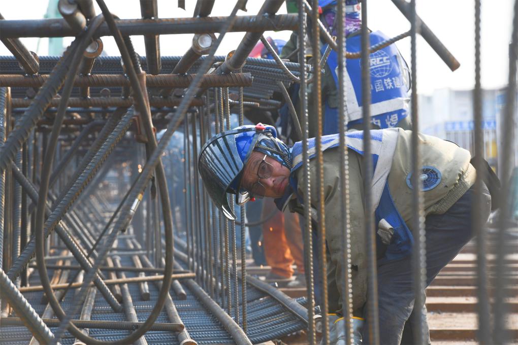 胡建国在焊接钢筋笼(8月27日摄)。