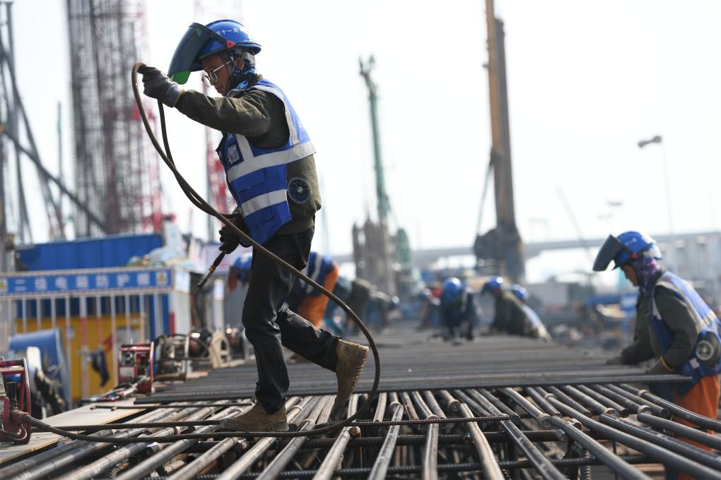 烈日当空,在广州市南沙区南珠中城际铁路中铁十一局的工地上,建设者们挥汗如雨。