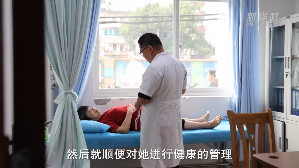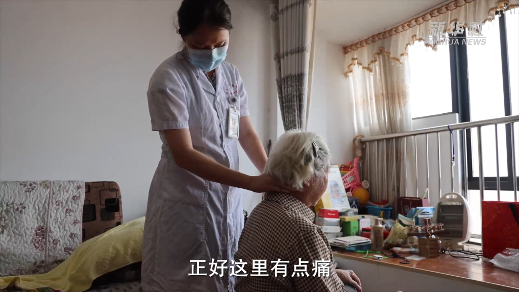 早上,广西南宁市江南区福建园社区卫生服务中心的医务人员来到了89岁患者蒙惠炳的家中,提供诊疗服务。蒙惠炳患肩周炎和颈椎病多年,如今通过家庭病床服务实现了在家住院。