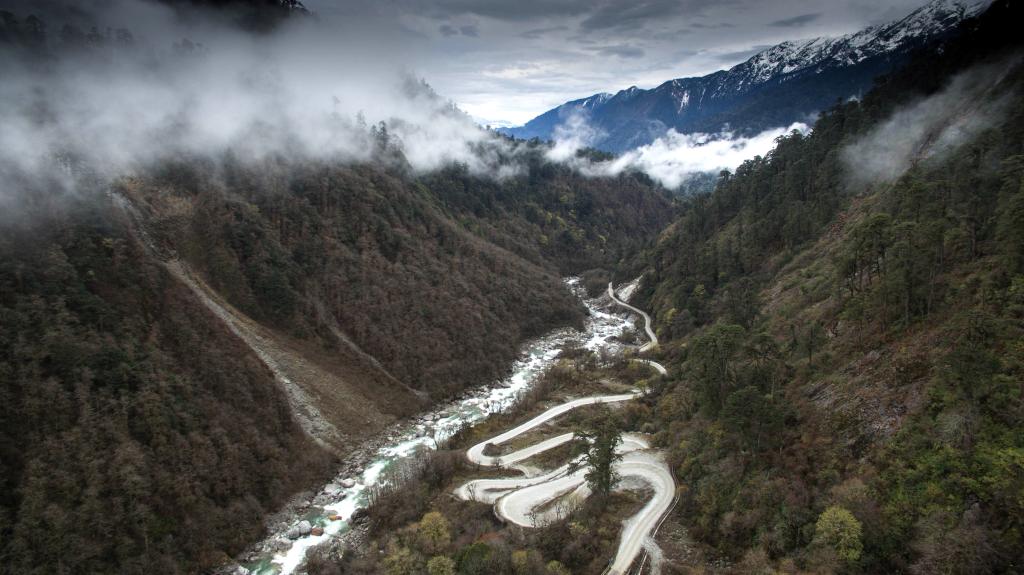 2017年3月30日,西藏墨脱公路上空云雾缭绕。2013年,墨脱公路正式通车,实现我国“县县通公路”。新华社记者 普布扎西 摄