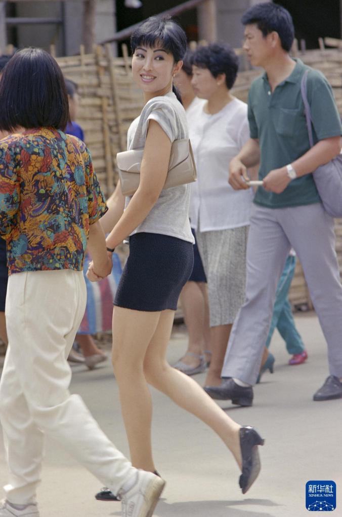 1991年9月,一名身着超短裙的女孩走在辽宁大连街头。新华社记者 张小龙 摄