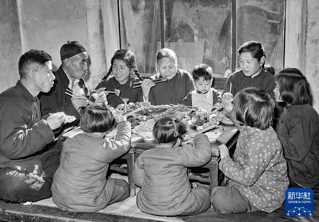 1953年春节,天津居民王德铸(左一)一家人在吃团圆饭。新华社发