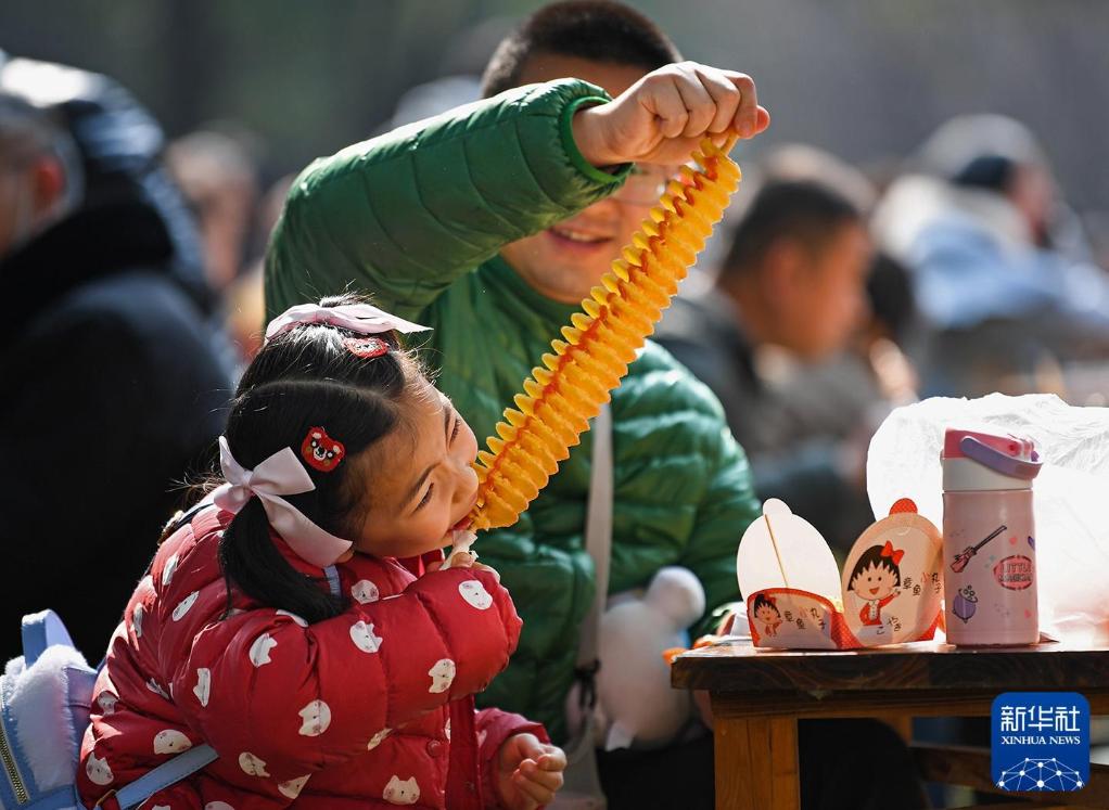 2023年1月23日,一对父女在四川成都街头品尝小吃。新华社记者 王曦 摄