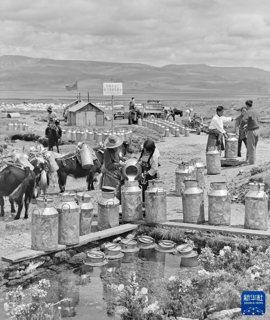 1976年拍摄的甘肃碌曲县郎木公社贡巴大队的牛奶交售站。新华社记者 李生才 摄