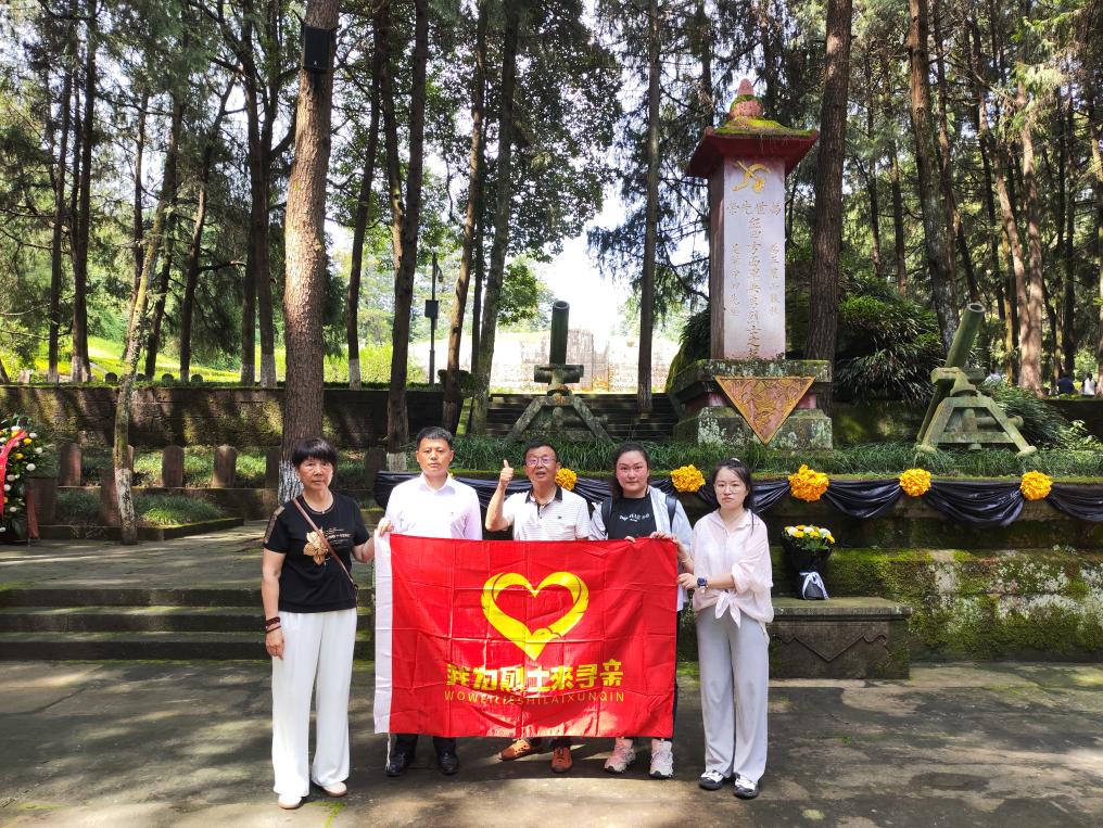 2024年7月,孙嘉怿(右二)陪同湖北籍红军烈士黄明文的亲属到四川省通江县祭扫。新华社发